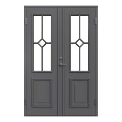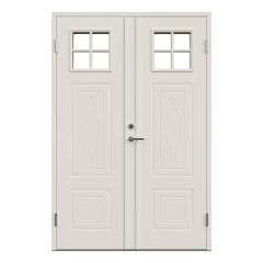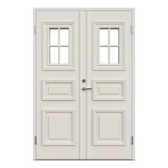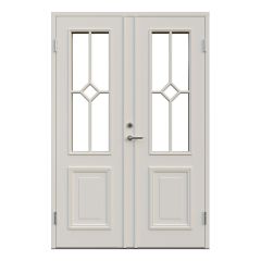 Leksandsdörren erbjuder även pardörrar, som med sin eleganta symmetri blir ett lyxigt komplement till husets entré. Dessa dörrar ger inte bara en storslagen estetisk effekt utan är också funktionella, med smarta lösningar för att säkerställa långvarig användning och hög energiprestanda.