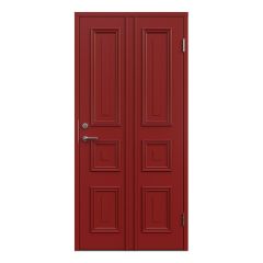 Leksandsdörren erbjuder även pardörrar, som med sin eleganta symmetri blir ett lyxigt komplement till husets entré. Dessa dörrar ger inte bara en storslagen estetisk effekt utan är också funktionella, med smarta lösningar för att säkerställa långvarig användning och hög energiprestanda.