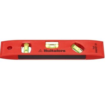 Ett slagtåligt vattenpass i röd ABS-plast, med magneter på undersidan. Okrossbara rörlibeller med mycket hög genomsk...