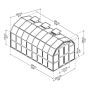Konstruktionen är robust och hållbar och klarar stark vind samt tung snöbelastning, upp till 75kg / m². Designen är vacker och genererar en generös takhöjd vilket är både elegant och funktionellt. Dubbeldörrarna med spärrhake ger en enkel åtkomst både in och ut från växthuset. Takluckorna ingår för effektiv ventilation.