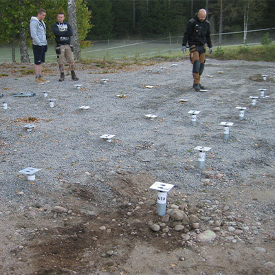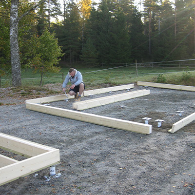 1. Plintgrund är normalt den lättaste lösningen för en grund. Både enkel och prisvärd. Här utförd med markskruv från Sluta Gräv.