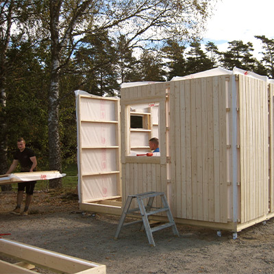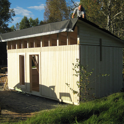 Beräkna 3 dagar om ni är två som snickrar och att grunden redan är färdigställd.