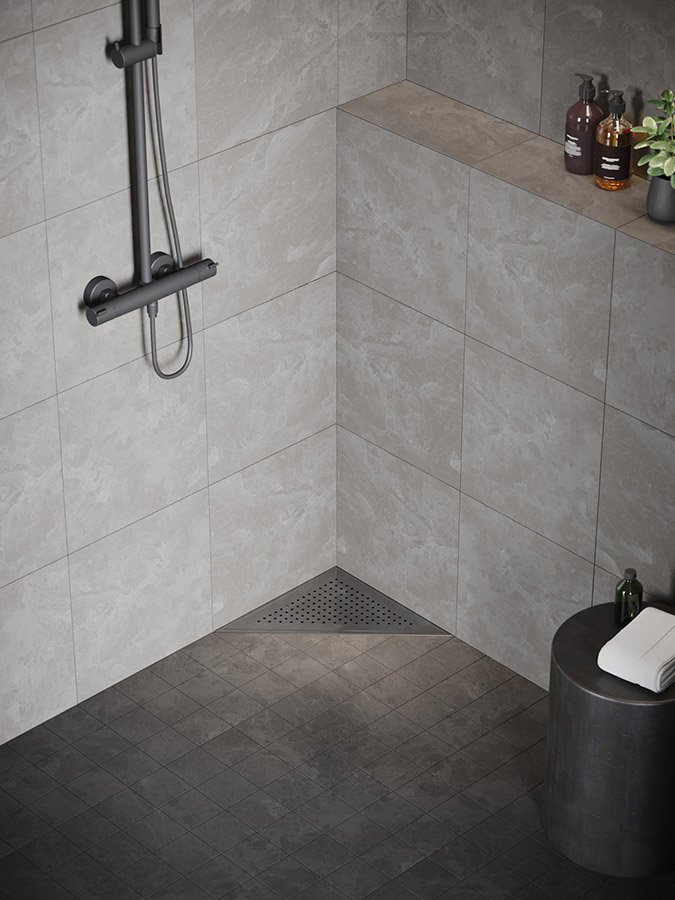 Oavsett vilken form eller vilka material du vill ha har vi gjort valet, installationen och underhållet så smidigt som möjligt. Beakta hela omgivningen I planeringen ska man beakta formen och storleken på badrummets duschutrymme och det valda golvkaklet.