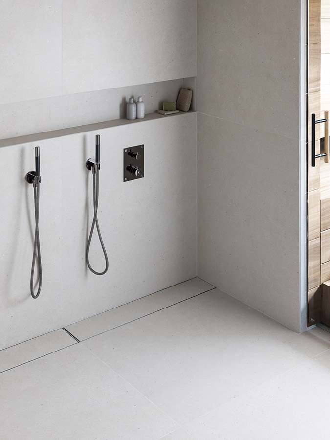 De nya, stora designsilarna omformar den traditionella synen på golvbrunnar. Viesers designsilar blir en viktig del av badrummets inredning. De möjliggör också användning av stora golvplattor.