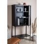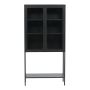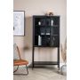 Detta är ett praktiskt vitrinskåp med en smal design och ståtlig höjd! Glasdörrarna släpper in härligt ljus i skåpet och lyfter vackert fram allt du väljer att fylla skåpet med. Det finns tre smarta avlastningsytor som kan användas för förvaring av porslin, böcker eller andra vackra inredningsdetaljer. Tillverkat av svart pulverlackerat stål, vilken ger en hållbar och snygg yta. Lättare montering krävs.