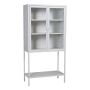 Detta är ett praktiskt vitrinskåp med en smal design och ståtlig höjd! Glasdörrarna släpper in härligt ljus i skåpet och lyfter vackert fram allt du väljer att fylla skåpet med. Det finns tre smarta avlastningsytor som kan användas för förvaring av porslin, böcker eller andra vackra inredningsdetaljer. Tillverkat av vitt pulverlackerat stål, vilken ger en hållbar och snygg yta. Lättare montering krävs.
